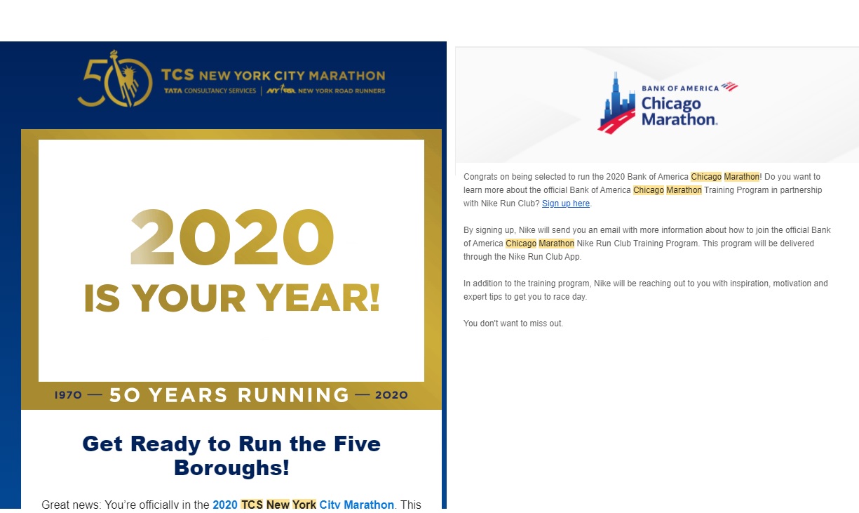 2019 yılında Berlin Maratonu’nu koşarken, “Bir daha asla maraton koşmam” diyordum. Fakat bitirdikten sonra 6 büyük maratonu koşmaya karar verdim. İlk işim, hemen hangi yarışların çekilişleri açık ona bakmak oldu. 2020 yılı için Chicago ve New York maratonlarının başvuruları açıktı. Hemen ikisine de başvurumu yaptım. En kötü biri çıkar diye düşünüyordum. Başvurularımı yapıp beklemeye koyuldum.